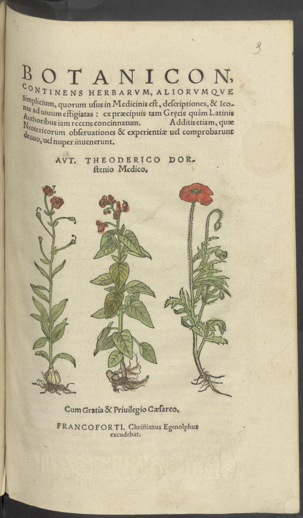 Botanicon, continens herbarum, aliorumque Simplicium, quorum usus in Medicinis est, descriptiones, & Iconas ad uiuum effigiatas : ex praecipuis tam Graecis quàm Latinis Authoribus iam recens concinnatum. Additis etiam, quae Neotericorum obseruationes & experientiae uel comprobarunt denuo, uel nuper inuenerunt.