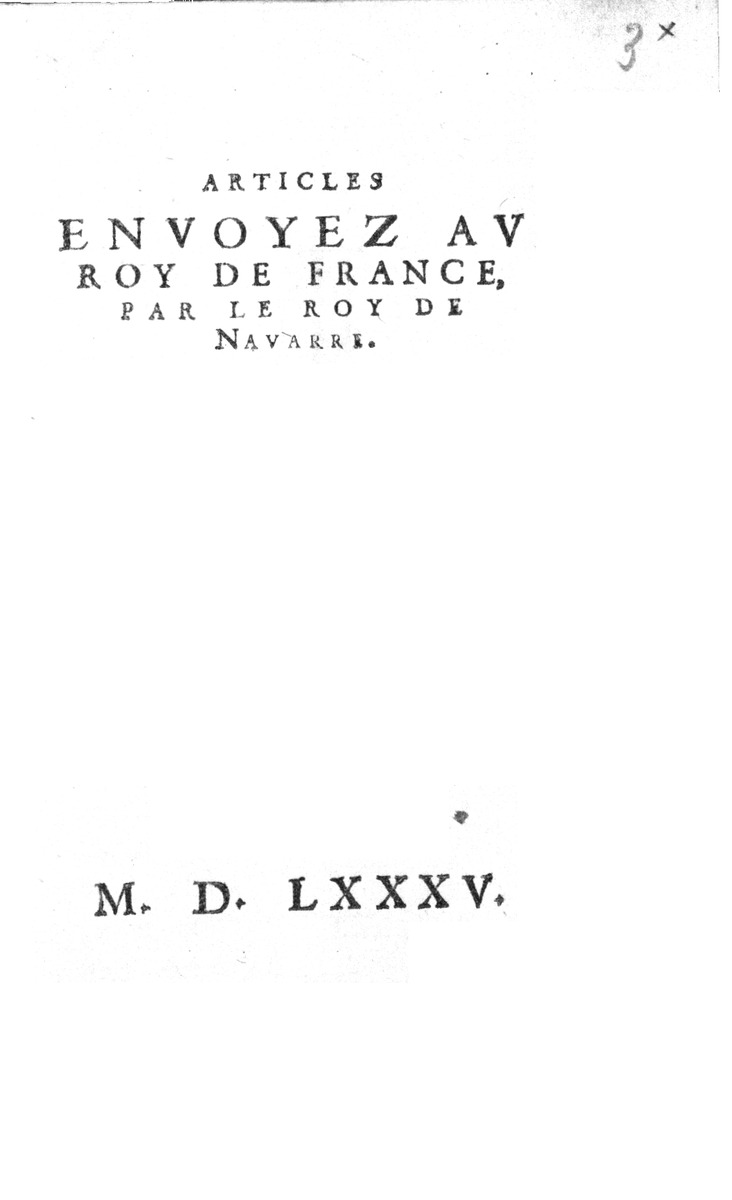 Articles envoyez au Roy de France, par le Roy de Navarre.